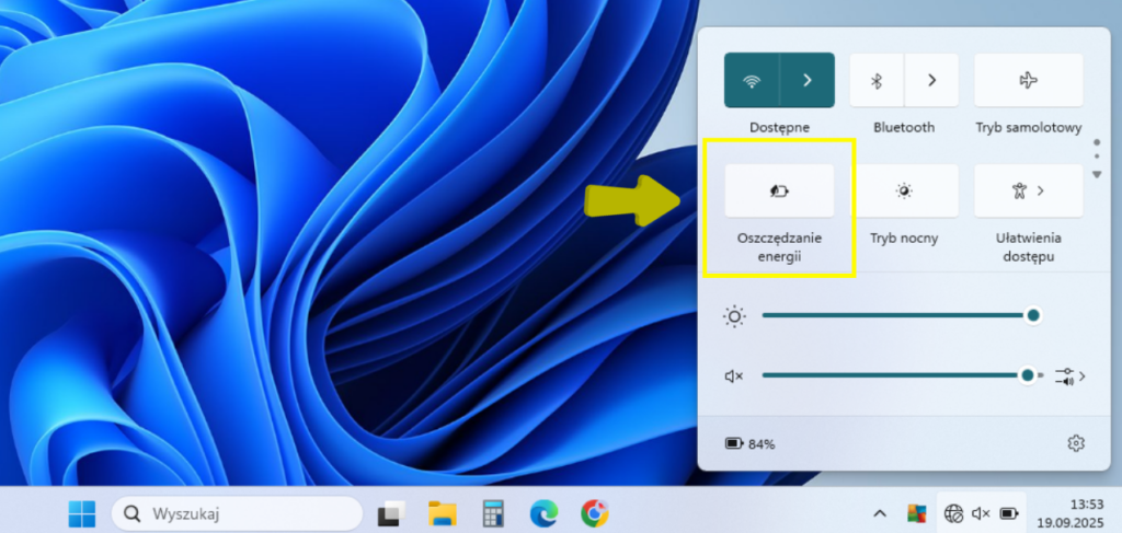 Tryb oszczędzania baterii to najprostszy sposób na wydłużenie czasu pracy laptopa. System przyciemnia ekran, ogranicza aplikacje w tle i redukuje zbędne procesy.